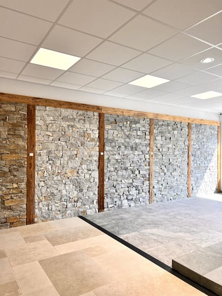 Au pied des Alpes du Valais, Capri rachète un nouveau showroom (Imporphyre). Un écrin fascinant qui offre sur plus de 200m² de la pierre naturelle et du carrelage.