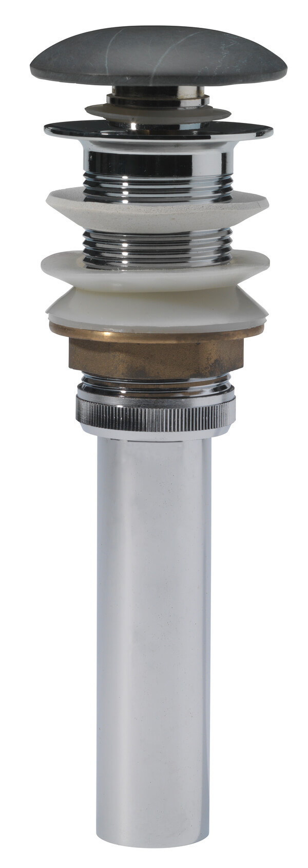Le capot de la bonde marbre gris bénéficie d'un traitement de finition particulièrement soigné : il est "adouci" pour un fini très lisse et mat. À la façon d'un cabochon de pierre naturelle, il habille cette bonde pratique et bien conçue dont le système pull push est très facile à utiliser.