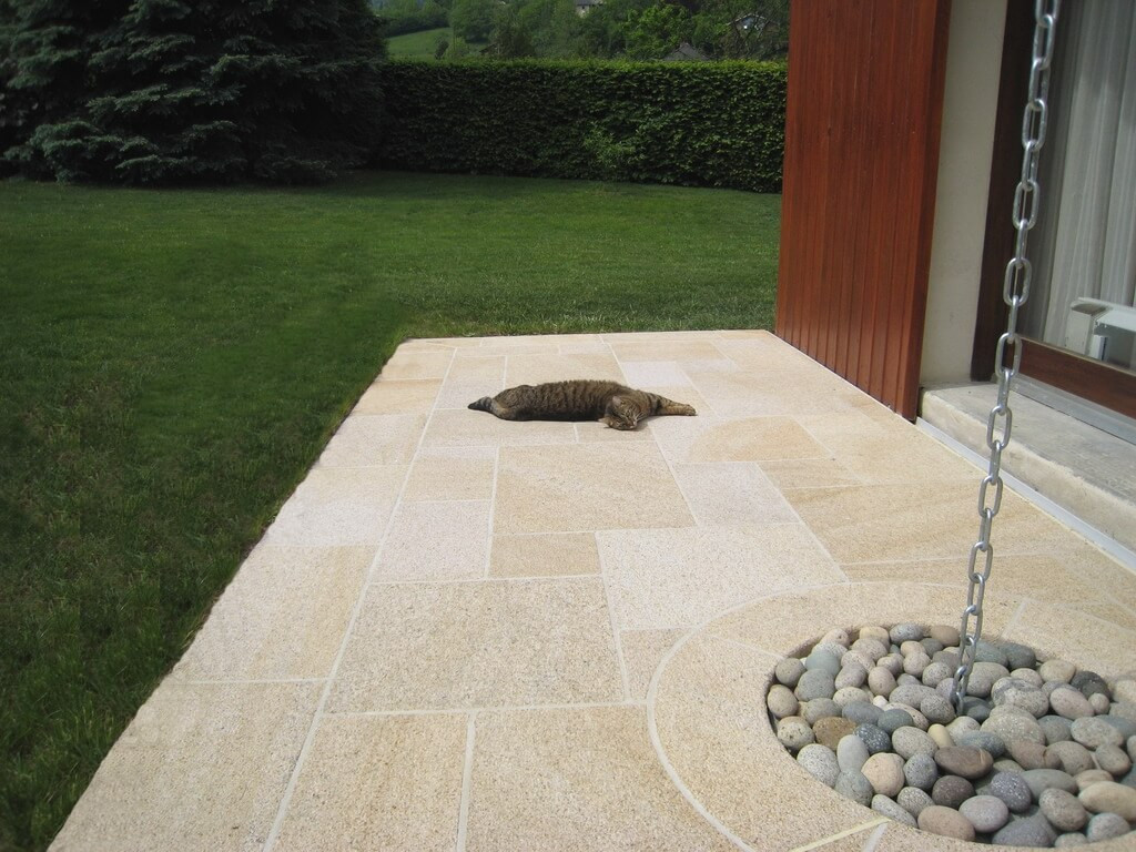 Le dallage Negara permet toutes les fantaisies d’utilisation. Les douces teintes beiges et jaunes de cette pierre naturelle se prêtent parfaitement à un revêtement sol en extérieur. La clarté du granit permet toutes les ambiances et donne authenticité à une terrasse, ou autour d'une piscine. Vous serez surpris quant à sa facilité d'entretien quotidien et de nettoyage !