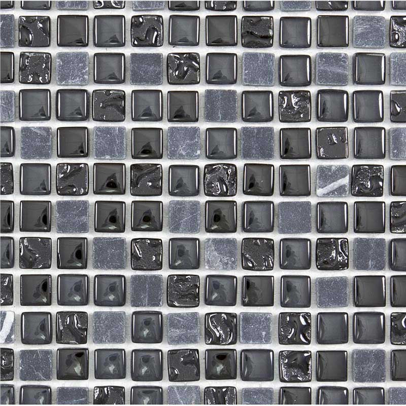 Osez la modernité avec la mosaïque Chrome Color en verre et pierre naturelle. Composée de petits carreaux de marbre gris foncé et de verre noir poli ou martelé de 1,5 X 1,5 cm, cette mosaïque très contemporaine offre une finition chromée du plus bel effet. Sophistiquée, elle possède la brillance du métal et joue sur les reflets du verre, adoucis par l’effet mat du marbre.