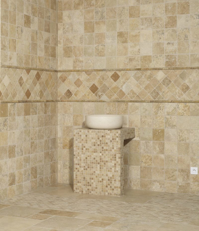 Posée au sol ou aux murs, la mosaïque Travertin Golden Walnut sera parfaite pour la réalisation d'une douche ou d'un sauna par exemple. Une fois humide, la pierre vous dévoilera toutes ses magnifiques teintes lumineuses.
