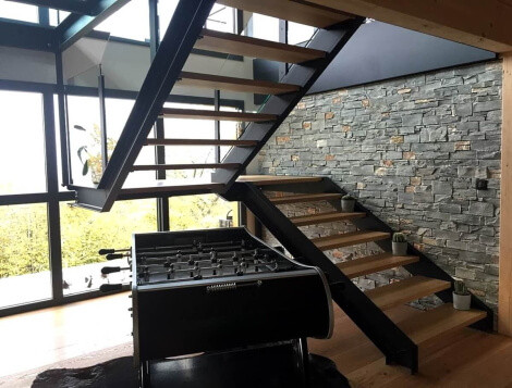 Les couleurs grises de ce parement en quartzite gris foncé se marient très bien avec tout type d'architecture et offre un rendu exceptionnel sur vos murs.