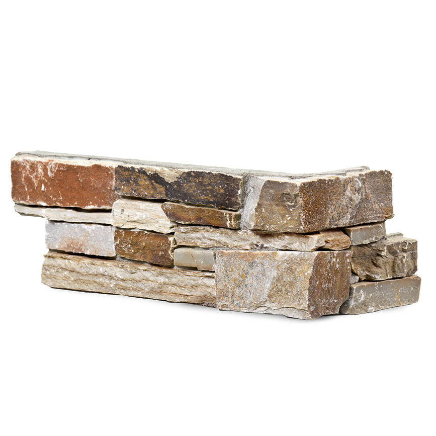 Ce parement d'angle se présente sous la forme d'une composition de pierres taillées d'une épaisseur de 3-4 cm, assemblées sur une trame cimentée à l'arrière. Redécouvrez la pierre naturelle sans ses contraintes, en intérieur comme en extérieur, grâce à ce revêtement mural !