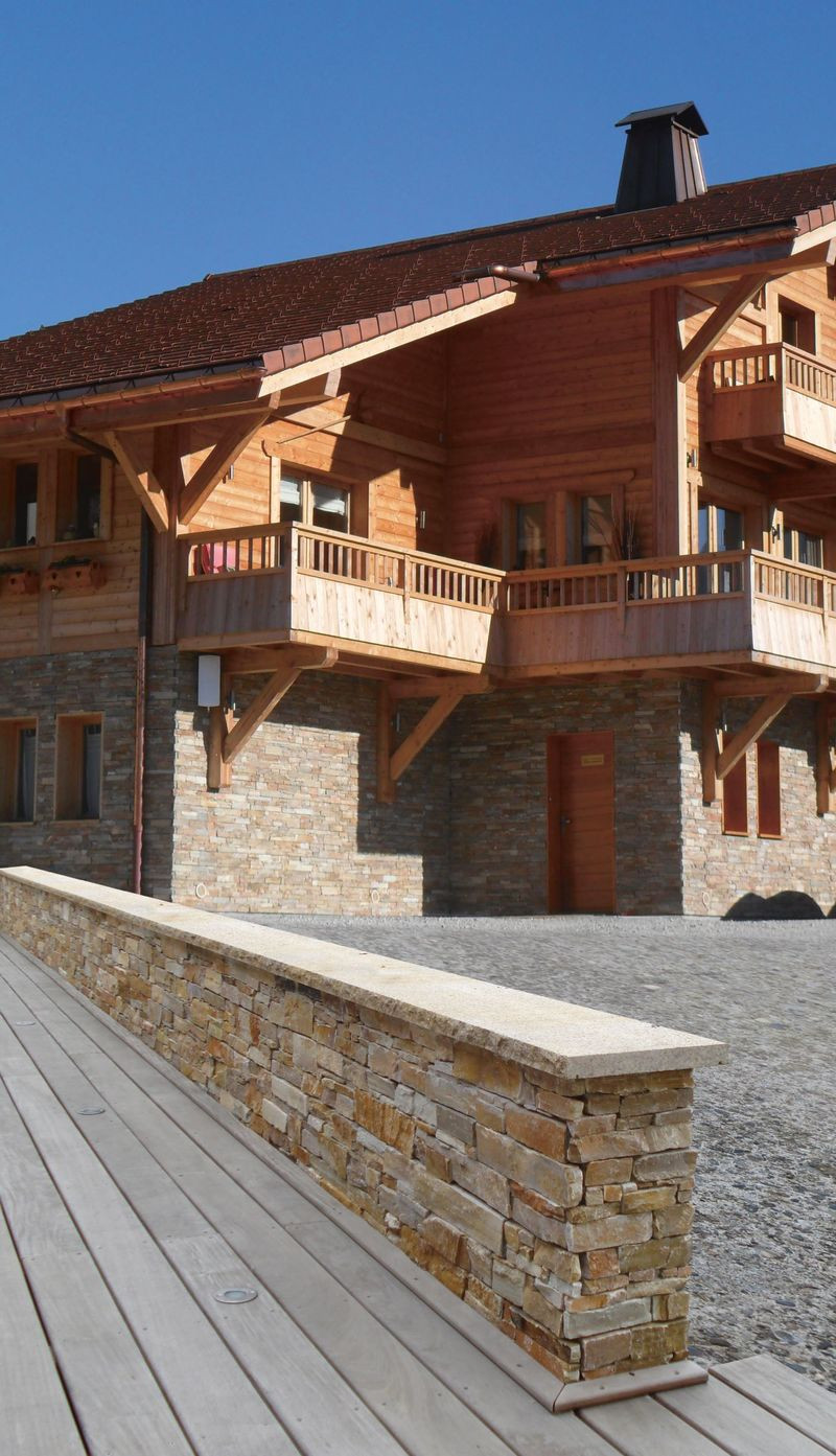 À l'extérieur d'une maison ou d'un chalet, accompagnant le parement de la même gamme, il s'installe sur un mur ou un muret pour y ajouter beaucoup de cachet et un caractère authentique. En intérieur, la douceur de ses couleurs naturelles souligne l'espace en y apportant couleur et relief. Bien dans la tradition des chalets de montagnes, ce revêtement mural brut se plaît en compagnie d'une cheminée et de meubles chaleureux en bois brut, dans une ambiance cocooning réconfortante.