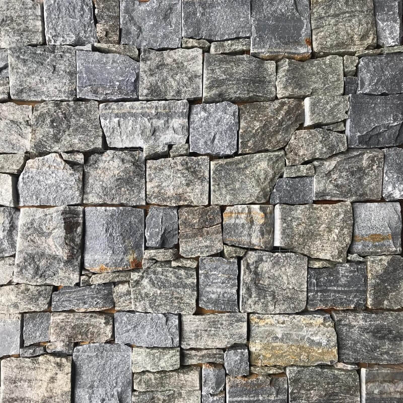 Le parement en pierre naturelle Grimisuat va faire entrer une grande bouffée d'air frais chez vous. Ses applications sont multiples : il se plaît aussi bien en extérieur sur des piliers, une façade ou un muret qu'en intérieur sur le mur d'un salon ou d'une pièce à vivre. Les irrégularités de sa structure animeront un pan de mur de façon très naturelle.