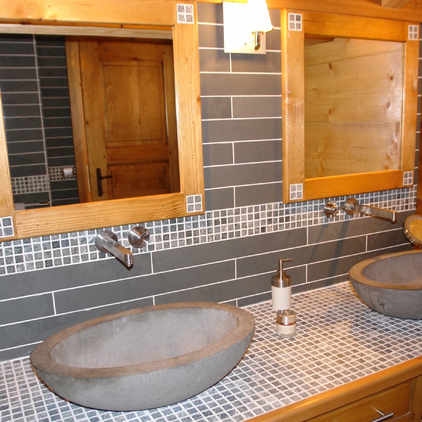Ce dallage en Ardoise Grise est la solution pour révéler une touche d’authenticité à votre intérieur. Classe, ce dallage décore une salle de bains, par exemple, vous pouvez opter pour le « tout ardoise ». Ou alors, n’hésitez pas à varier les plaisirs et opter pour sa teinte grise, à marier avec d’autres coloris, comme du blanc. En dallage, il mettra en valeur votre cuisine blanc laqué. Vous pourrez aussi le poser sur un pan de mur pour mettre en lumière une pièce de mobilier blanc pur par exemple. Si vous êtes un adepte du bois, le dallage peut être combiné parfaitement pour un effet plus rustique et chaleureux !