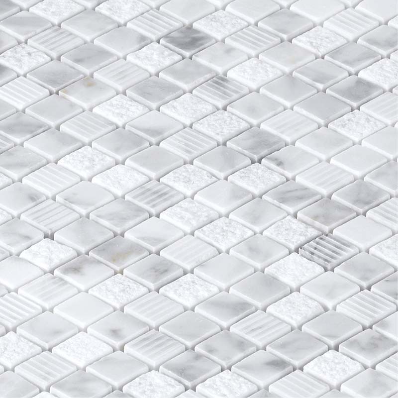 Proposée en plaques déjà assemblées et prêtes à poser, la mosaïque en marbre White Wood s’installe facilement.