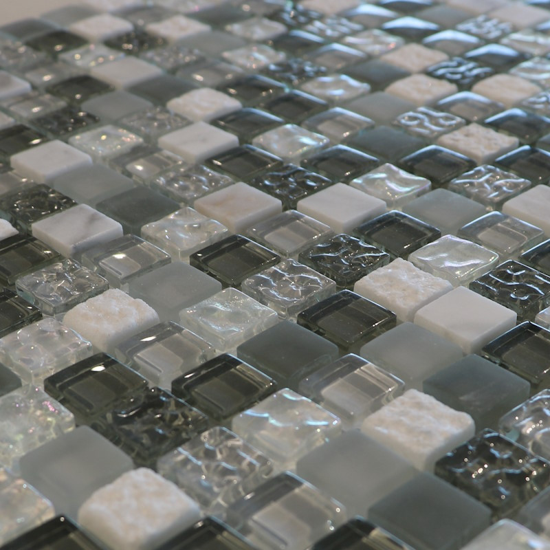 La mosaïque Glacier Gris est un produit très tendance, offrant de multiples possibilités de décors dans votre intérieur. En marbre et verre, la mosaïque révèle des coloris très actuels, blanc, argent et gris pour se marier avec vos murs et vasques de salle de bain par exemple. Quant à ses dimensions, le carreau mesure 1.5 x 1.5 cm et est fixé sur une trame de nylon de 30.41 x 30.41 cm (épaisseur : 0,8 cm). D’un poids léger, 1,48 kg, chaque plaque révèle une finition polie et bouchardée.