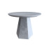 La table mesure 50cm de diamètre et 35cm de hauteur et est composée de pierre naturelle blanche avec des nuances de gris pour un rendu élégant.