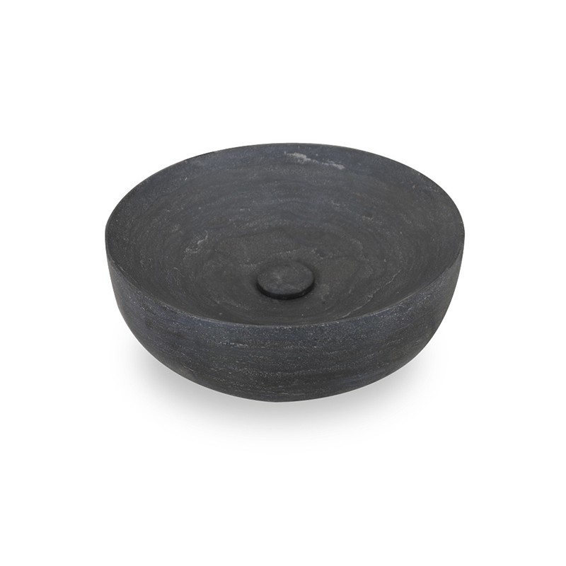 La vasque ronde d’intérieur Mabowl Calcaire Gris est une création en pierre naturelle. Taillée dans un calcaire, sa nuance gris foncé s’orne d’un léger veinage blanc dont le dessin irrégulier accentue la naturalité authentique. Elle a un diamètre de 45 cm pour une hauteur de 15 cm, et ces proportions mesurées, parfaitement ergonomiques à l’utilisation, lui permettent aussi de trouver sa place dans un grand nombre de configurations. Sa finition adoucie est très agréable au contact. La vasque s’utilise essentiellement à l’intérieur, en salle de bain ou WC. Son poids est de 26 kg.